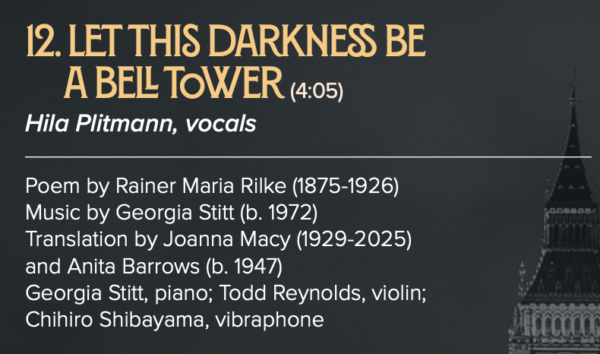 Let This Darkness Be A Bell Tower Featured on: Bell Tower Song Type: art song, soprano, soprano art song Associated Artists: Hila Plitmann